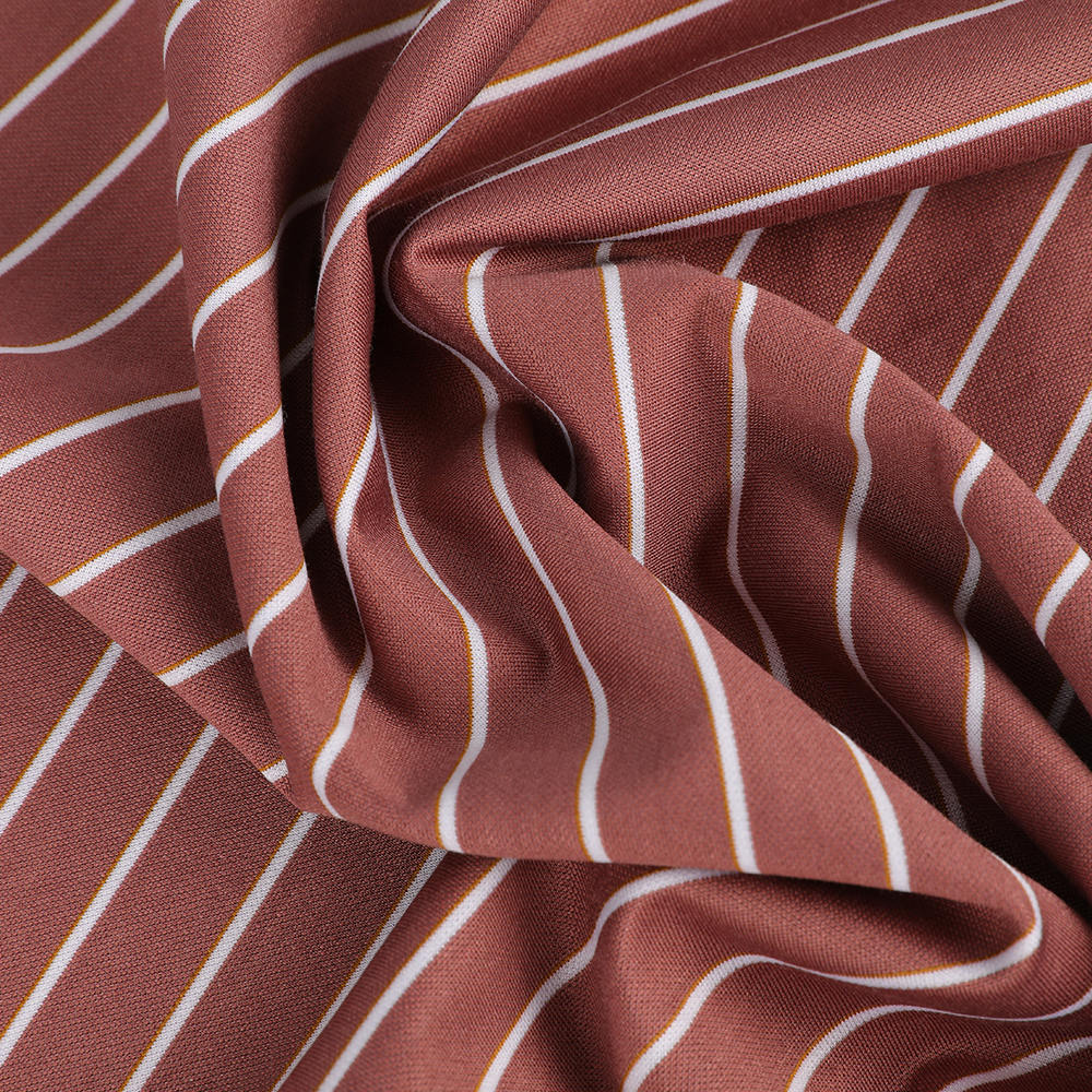 Tkanina od prugastih udobnih svilenih košulja koristi prirodne prednosti svilenih i pamučnih vlakana kako bi formirala jedinstvenu strukturu vlakana, koja ne samo da zadržava sjaj i osjetljiv dodir svile, već i kombinira prozračnost i izdržljivost pamuka, učinkovito poboljšavajući udobnost nošenja i sposobnost prilagodbe u više sezone. Njegova dobra apsorpcija vlage i performanse znojenja mogu učinkovito regulirati mikroklimu površine tijela, održavati korisnika suhu i udobnu i održavati tijelo hladnim čak i u visokotemperaturnim okruženjima.